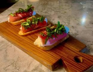 rustic bread, burrata, prosciutto, Calabrian chile-honey