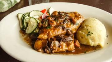 sautéed breast of chicken, porcini mushrooms, pancetta, onions and marsala wine served with patate del giorno, and seasonal vegetables