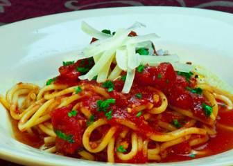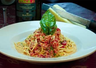 shrimp, crab, and lobster in a lightly spiced, tomato-cream sauce served over fresh spaghetti