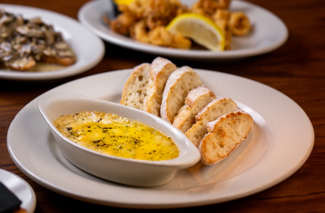 baked asiago cheese, ground black pepper, fresh thyme, served with toasted Italian bread