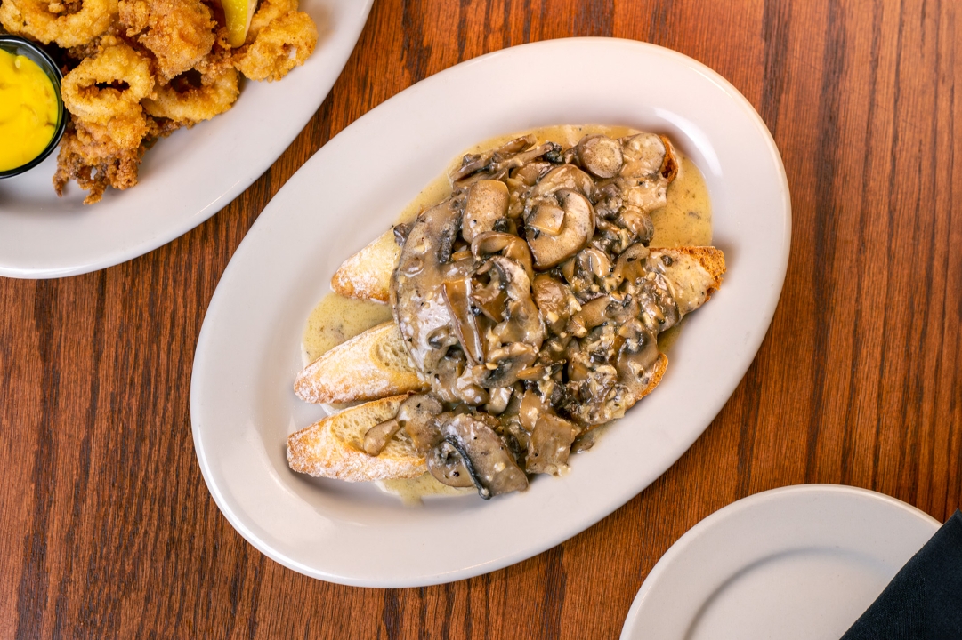 rustic bread, sauteed wild mushrooms, and sherry cream sauce